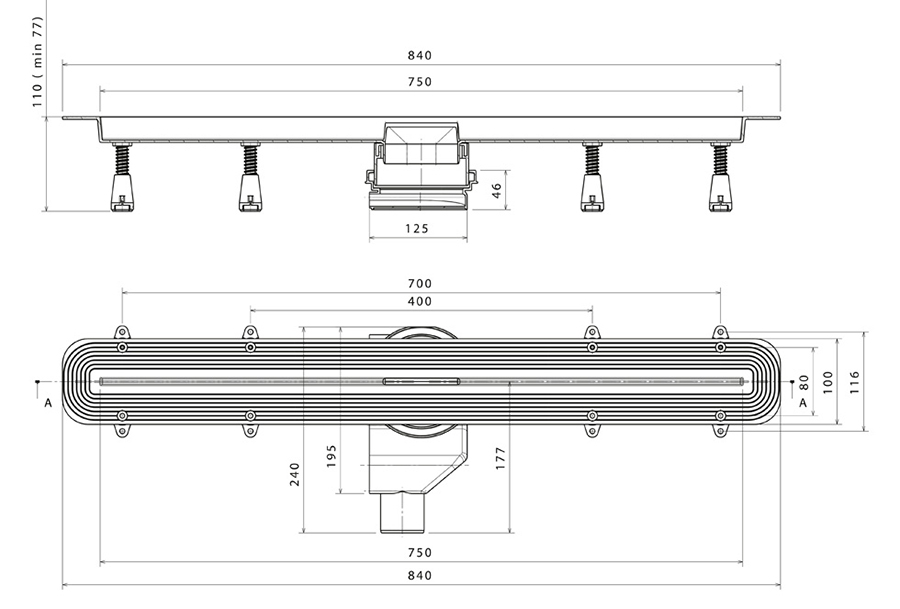 由于用于漏極的調(diào)整的通用解決方案(DN110毫米減速器被切割為縮短)EVO ULTRA THIN WAVE漏極可安裝在新的和裝修的浴室。最小高度為77毫米并完全滿足現(xiàn)代化建設(shè)的要求最大110毫米。腿高度調(diào)節(jié)的安裝和使用過程中提供額外的安全